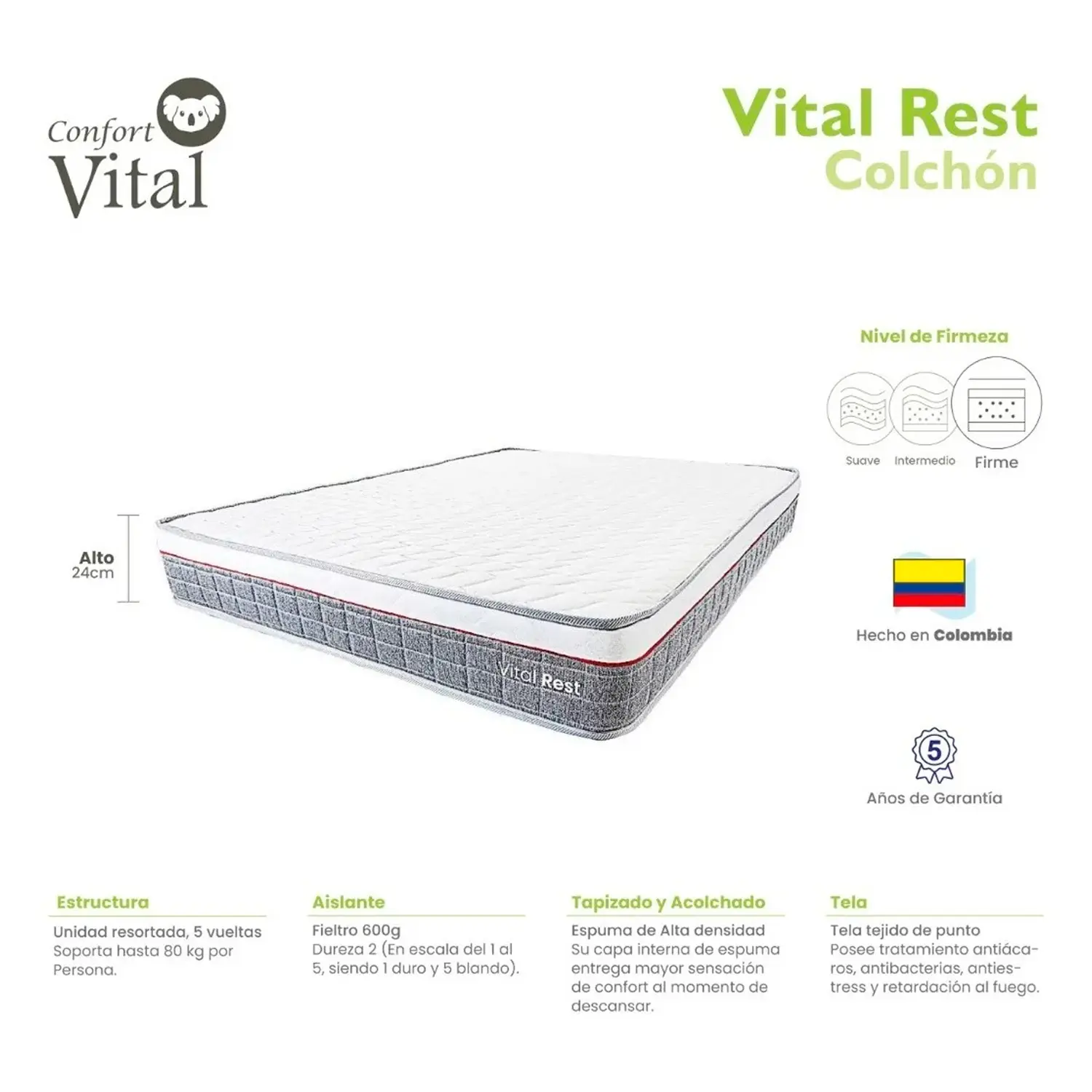 - Somos dueños del proceso de fabricación, por lo que podemos garantizar que todos los colchones Confort Vital cumplen con nuestros altos estándares de comodidad. La calidad más alta a un precio justo.